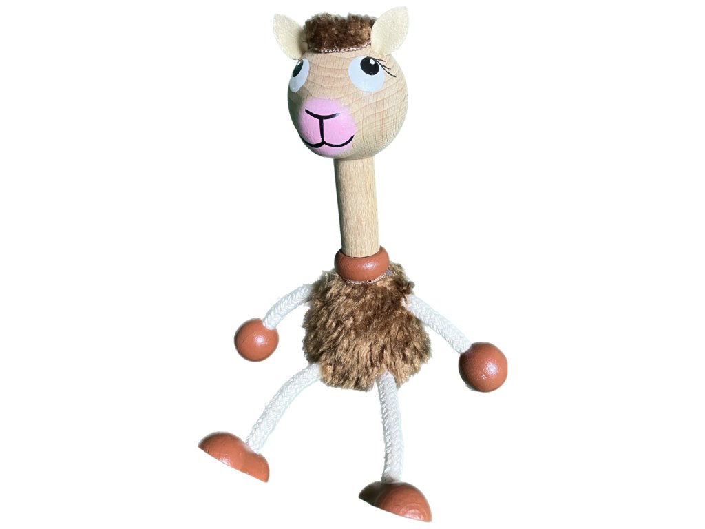 Roztomilá dřevěná alpaka v tmavě hnědém provedení okouzlí každého milovníka zvířátek i designových doplňků. Dostupná je ve dvou variantách – sedící pro umístění na polici či stůl, nebo na pružině, kdy se při pohybu vesele pohupuje a rozveselí každý prostor.