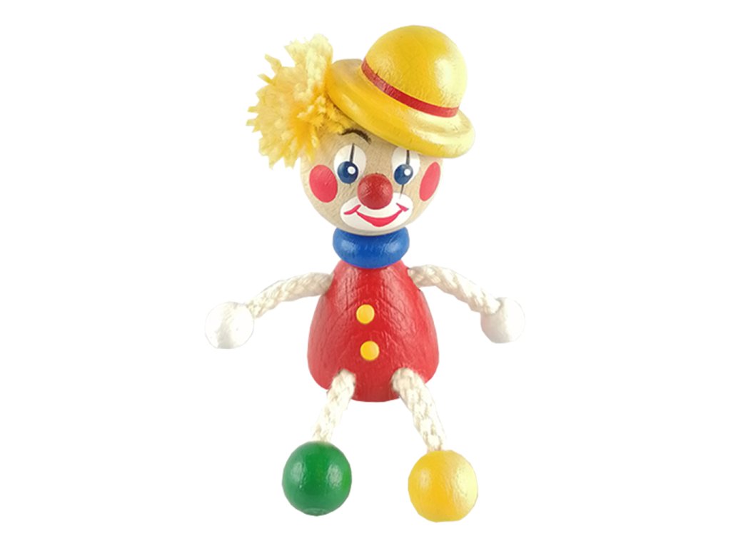 Dřevěný mini klaun (5 cm) – magnetka i přívěsek pro každodenní úsměv
